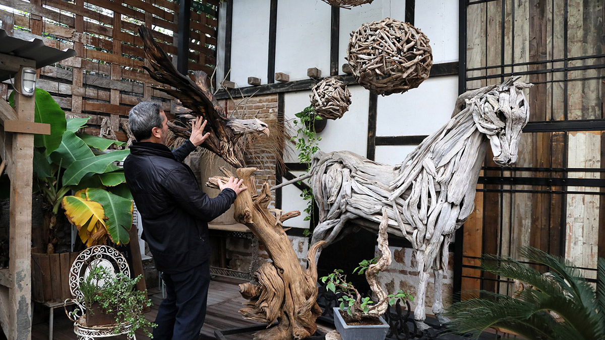 Antalya’da, harabe gecekonduyu atölyeye çeviren ileri geri dönüşüm (driftwood) sanatçısı Adnan Ceylan, doğadan kopup, nehir yolları ile sürüklenen odun ve ağaç parçalarından hazırladığı ahşap koleksiyonu tamamladı.