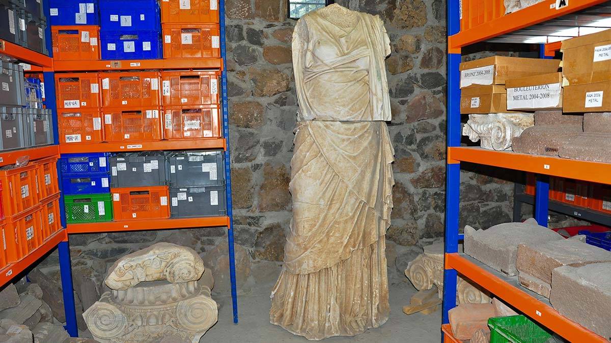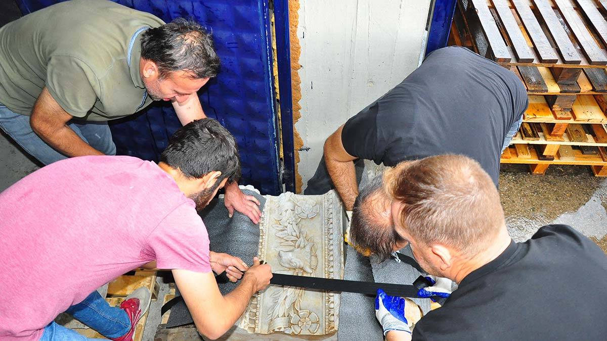 Aigai Kazı Deposu’nda kapasite yetersizliği nedeniyle tutulan 8 heykel ve binlerde parça eser 17 yılın ardından yeni müzeye taşındı