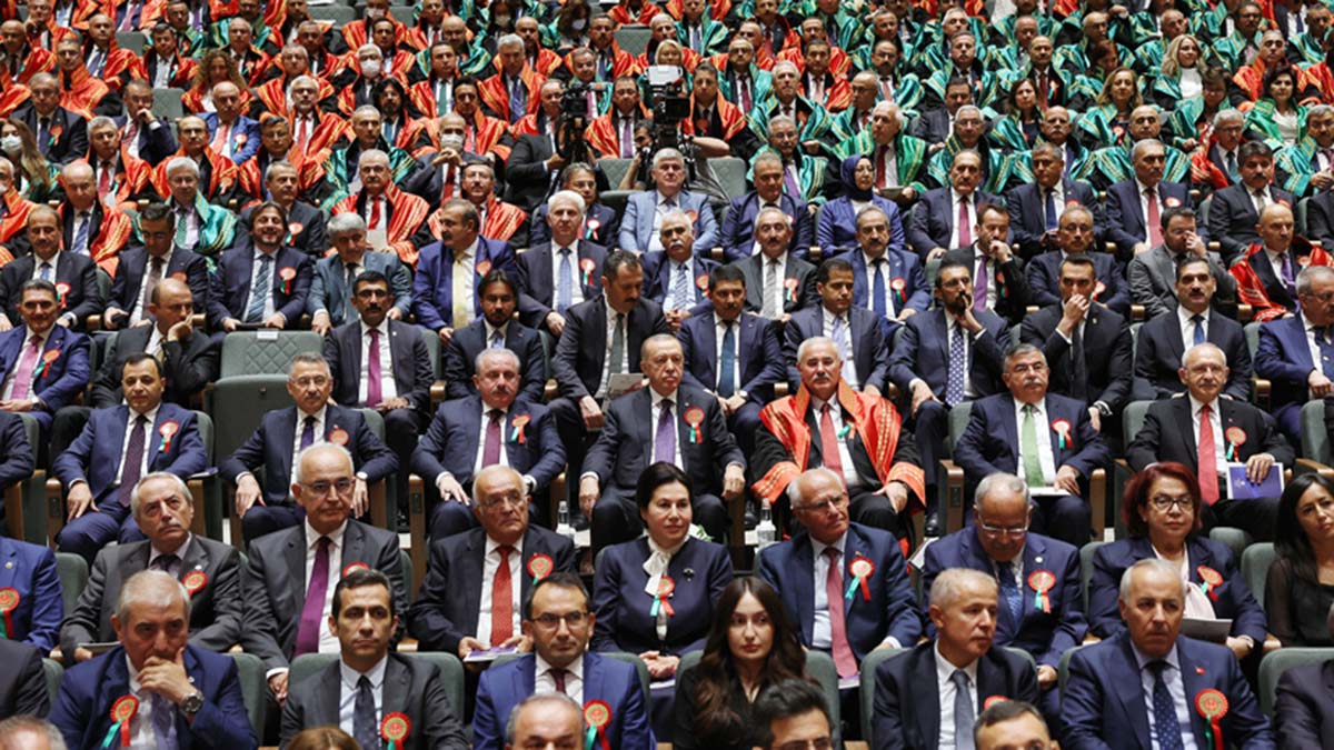 Cumhurbaşkanı Erdoğan, Yargıtay’da düzenlenen 2022-2023 Adli Yıl Açılış Töreni’ne katıldı. Törende, Erdoğan’ın yanı sıra TBMM Başkanı Mustafa Şentop, Cumhurbaşkanı Yardımcısı Fuat Oktay, CHP Genel Başkanı Kemal Kılıçdaroğlu, Anayasa Mahkemesi Başkanı Zühtü Arslan, Yargıtay Başkanı Mehmet Akarca, Danıştay Başkanı Zeki Yiğit, Adalet Bakanı Bekir Bozdağ, İçişleri Bakanı Süleyman Soylu, Yargıtay Cumhuriyet Başsavcısı Bekir Şahin, AK Parti TBMM Grup Başkanı İsmet Yılmaz, BBP Genel Başkanı Mustafa Destici, Türkiye Barolar Birliği Başkanı Erinç Sağkan ve yüksek yargı mensupları yer aldı. Törende ilk olarak Kültür ve Turizm Bakanlığı Devlet Çoksesli Korosu konser verdi. Ardından Yargıtay’ın kuruluşundan bugüne tarihsel sürecini anlatan film gösterimi yapıldı.