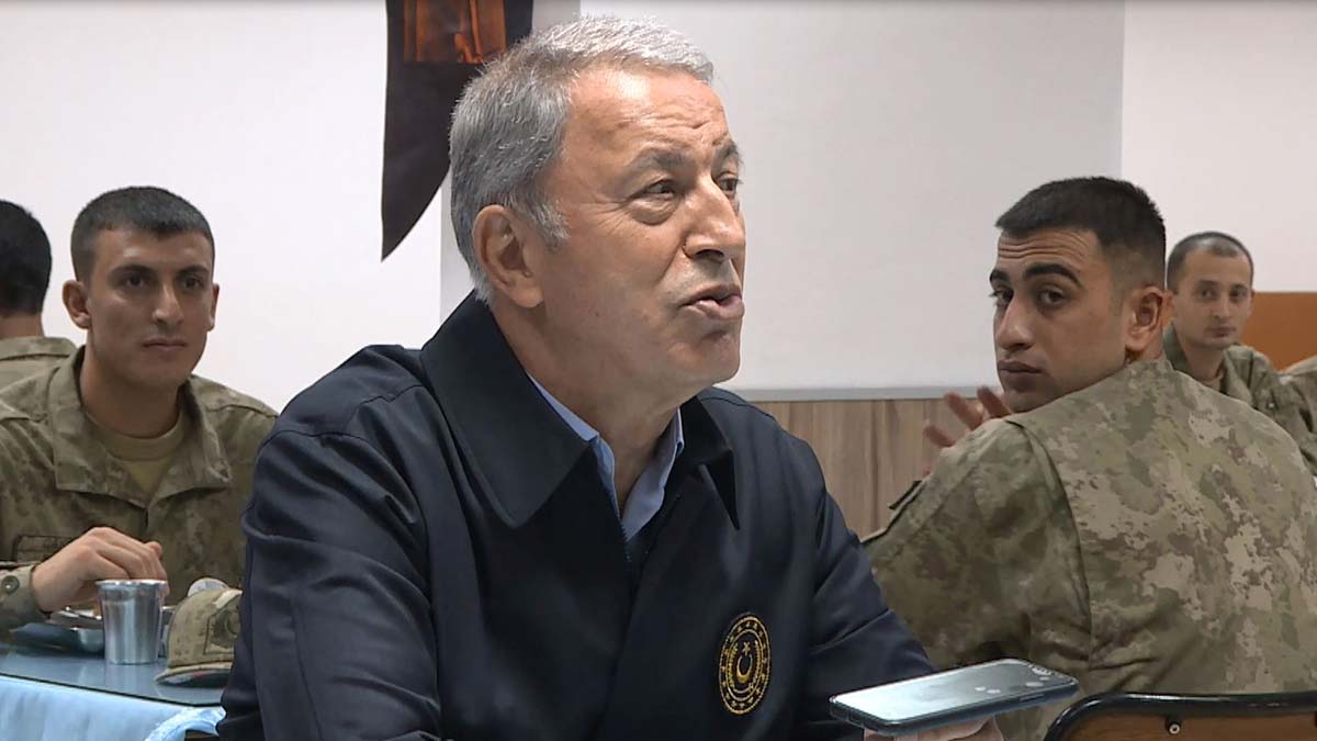 Suriye’nin kuzeyindeki terör saldırılarına ilişkin bilgi alan ve sınır hattındaki güvenlik tedbirlerini inceleyen Akar, gece yarısı Hakkari’ye geçti. Selahaddin Eyyübi Havalimanı’nda Vali İdris Akbıyık, 2’nci Ordu Komutanı Orgeneral Metin Gürak ve diğer yetkililer tarafından karşılanan Akar, komutanlarla Yüksekova’ya bağlı Dağlıca’daki 1450 rakımlı 4’üncü Hudut Tabur Komutanlığı’na geçti. Geceyi, bir dönem teröristlerin ‘girilemez’ dediği bölgede geçiren Akar, bayram namazını da Mehmetçik ile kıldı. Daha sonra ‘hudut kartalları’ ile bayramlaşan Akar, “Burada görev yapmak büyük bir şeref. Geçmişe bakıldığında burada çok ciddi mücadeleler verildi ve bölge teröristlerden temizlendi” diye konuştu.