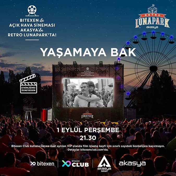 Akasya Açık Hava Sineması, Bitexen ana sponsorluğunda açık hava film günleri düzenliyor. Etkinliğin ikinci haftasında “Her Şey Her Yerde Aynı Anda”, “Yaşamaya Bak” ve “Batı Yakası’nın Hikayesi” filmleri seyirciyle buluşacak.