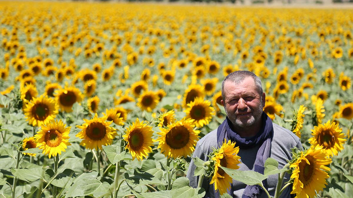 “Dekarda ortalama 80- 100 kilo yağlık ayçiçeği tarımını göze almıştık, çünkü Türkiye ortalamaları da biraz o yöndeydi. Bizim amacımız bunu biraz daha yükseğe taşıyabilmek. O nedenle 2 farklı yağlık ayçiçeği türüyle çalışmalara başladık. İkisi de sıcaklık, susuzluk direnci yüksek ayçiçeği tohumları. Bu tohumlarla yaptığımız çalışmalarda, şu anda kafa büyüklükleri ve yüksekliklerine baktığımızda zannediyorum dekarda ayçiçeği olarak 200 kiloyu zorlayacağız gibi görünüyor. Yağ oranı ise yüzde 40-53 arasında değişebiliyor ve toplamda 70-80 ton civarı yağ beklentimiz var.”