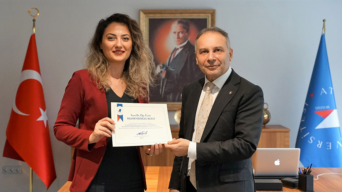 Öte yandan Atlas Üniversitesi Rektörü Prof Dr. Mustafa Küçük, Dr. Öğr. Üy. Hilal Denizoğlu Külli’ye ‘TÜSEB B GRUBU ARGE PROJESİ’ dahilinde “İnteraktif Dijital Solunum Oyunu ve Cihazının Geliştirilmesi ve Bronşektazili Çocuklarda Etkinliğinin İncelenmesi” projesiyle, Atlas Üniversitesinin bilimsel çalışmalarına olan katkılarından dolayı teşekkür belgesi takdim etti.
