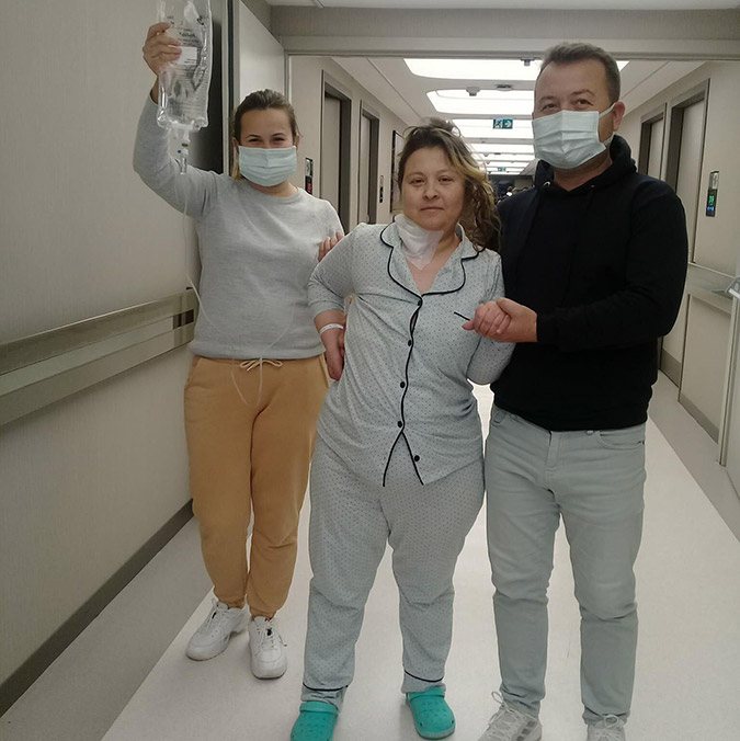 Yaşam konforunu bozmayacak iki ilaçla en son çektirdiğimiz tomografide çok küçük birkaç nokta dışında beyin de dahil olmak üzere vücudundaki bütün tümörlerin kaybolduğunu gördük. Beyin metastazlarıyla mücadele ederken yoğun kortizon aldı. Ona bağlı kas gücünde kayıplar oldu ama bunlardan da arınıyor. Günlük hayatını tamamen normal götürebilecek durumda. Bizim açımızdan tam sağlıklı bir kadın.”