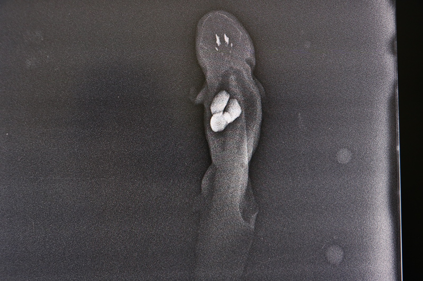 Aksolotl balığının Türkiye’de çok fazla yetiştirilmediğini söyleyen Erer, "Balığın sahibi taş yuttuğunu görmüş daha sonra kliniğimize başvurdu. Birkaç gündür iştahsızlığının olduğunu, yemek yemediğini ve artık yüzerken suyun yüzeyine çıktığını belirterek buraya getirdi. Taş yuttuğunu da direkt gördüğü için biz radyografi istedik ve röntgen muayenesi aldık. Daha sonra röntgen bulgularında da 3 adet taş tespit ettik.
