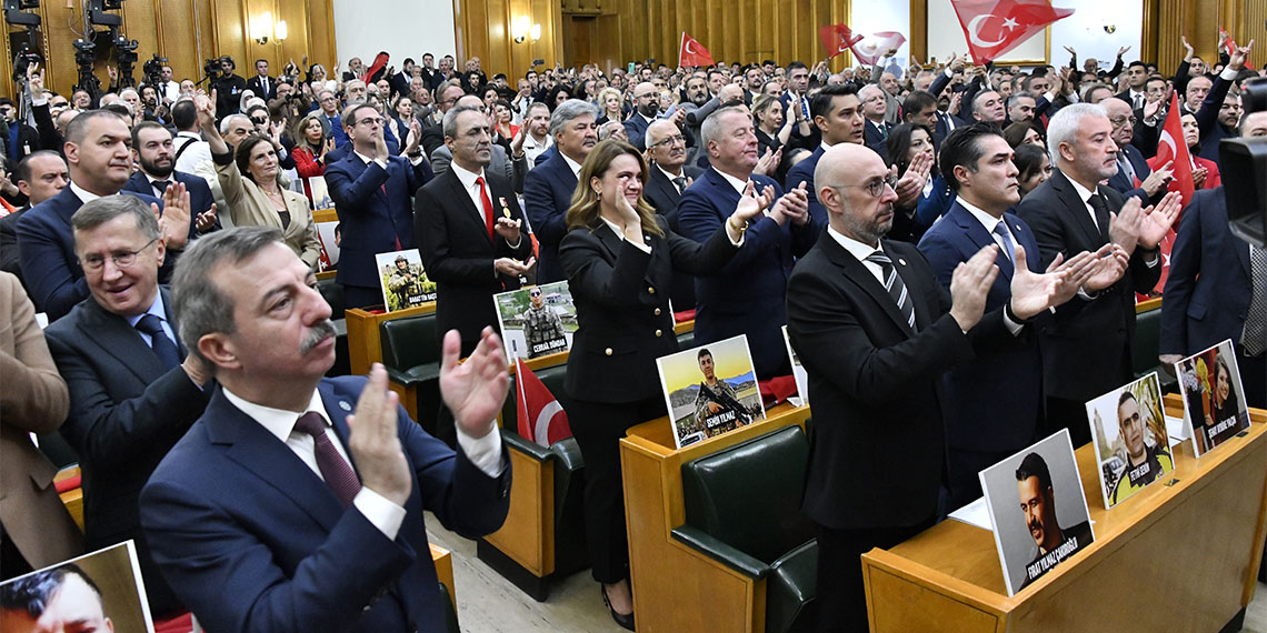 İYİ Parti Genel Başkanı Müsavat Dervişoğlu, partisinin TBMM grup toplantısında konuştu. Toplantı öncesinde grup sıralarına, Türk bayrağı ile birlikte terör ile mücadelede şehit olan asker, polis, öğretmen ve sivil vatandaşların fotoğrafları konuldu. Dervişoğlu, normalleşme tartışmaları ile ilgili, AK Parti, MHP, CHP, DEM partilerinin lider ve yönetici kadroları eliyle gayrı-milli mutabakat cephesi ilan edildiğini söyleyerek, “Normalleşme çağrılarıyla başlayan ve Türkiye Cumhuriyeti’nin kurucu niteliklerini ahlaksızca sorgulama cüretiyle devam eden süreç, dün itibarıyla yanına İmralı ve Kandil katillerini de alarak büyük Türk milletinin varlığına açıkça savaş ilan etmiştir. Ben başkaları gibi ne anlama geldiği belli olmayan, televizyon programlarında ve gazete köşelerinde, ‘Acaba ne demek istedi, ne yapmayı amaçlıyor’ türünden, tartışmaya açık cümleler kurmayacağım. Oldukça net, oldukça açık ve kısa konuşacağım. Cumhuriyetimizin 101’inci yılına bir haftamız var. Bizim ise kaybedecek 1 dakikamız bile yok; çünkü ihanet çemberi artık alabildiğine genişlemiş ve hayat sahamızı öylesine daraltmıştır ki, son bir organize darbe ile tamamen nefessiz bırakılabileceğimiz bir sürecin içine itilmiş bulunuyoruz” diye konuştu.
