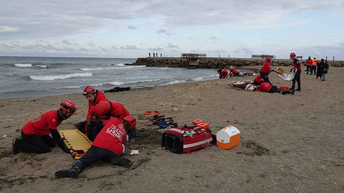 Trabzon’da Ulusal Medikal Kurtarma Ekibi (UMKE) gönüllülerince alabora olan tekneden yaralıları kurtarma tatbikatı düzenlendi.