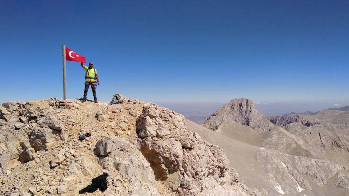 İstanbul’da yaptırdığı 3 metre uzunluğundaki Türk bayrakları ile Niğde’ye gelen dağcı Fehmi Efe, Aladağlar‘ın zirvesine tırmanış yaptı. Efe, dağın en yüksek zirvesi olan Kızılkaya, Emler ve Kaldır’a Türk bayraklarını dikti. Daha önce de Demirkazık Dağı’nda dağcı kazasına müdahale ederken şehit olan Astsubay Uğur Görkem Harmankaya’nın da aralarında bulunduğu dağ şehitleri için 4 Türk bayrağı diken Efe’nin diktiği toplam 7 bayrak, zirvelerde dalgalanıyor.