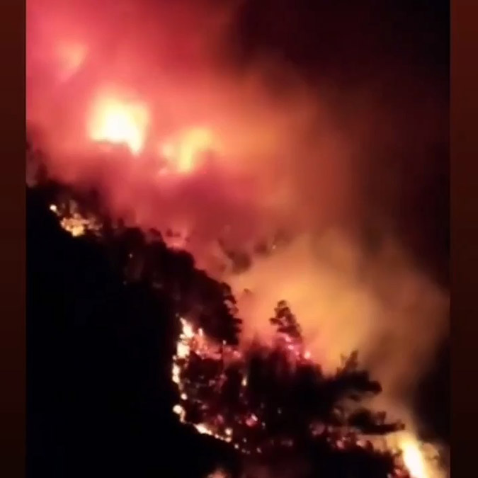 Merkeze 60 kilometre uzaklıkta dağlık alanda çıkan yangında, alevlerin tehdit ettiği 2 mahalle tedbir amacıyla boşaltıldı. Ekiplerin yoğun müdahalesi ve bölgede sağanak yağış nedeniyle yangın etkisini yitirdi. Elektrik tellerinin birbirleriyle sürtünmesi sonucu oluşan kıvılcımların yol açtığı belirtilen yangının kontrol altına alınması için çalışmalar sürdürülüyor.
