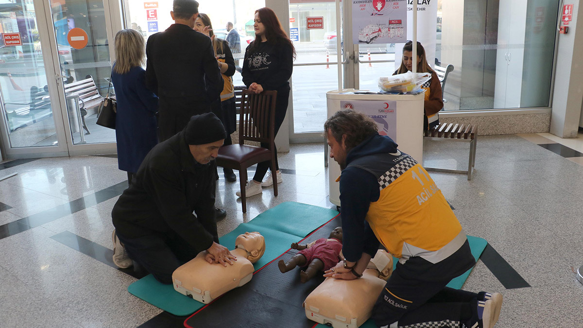Eskişehir’de, Paramedik ve Hastane Öncesi Acil Tıp Derneği üyeleri, ‘1-7 Aralık Acil Sağlık Hizmetleri Haftası’ nedeniyle ilk yardım konusunda farkındalık oluşturmak için alışveriş merkezinde ilk yardım eğitimi verdi.