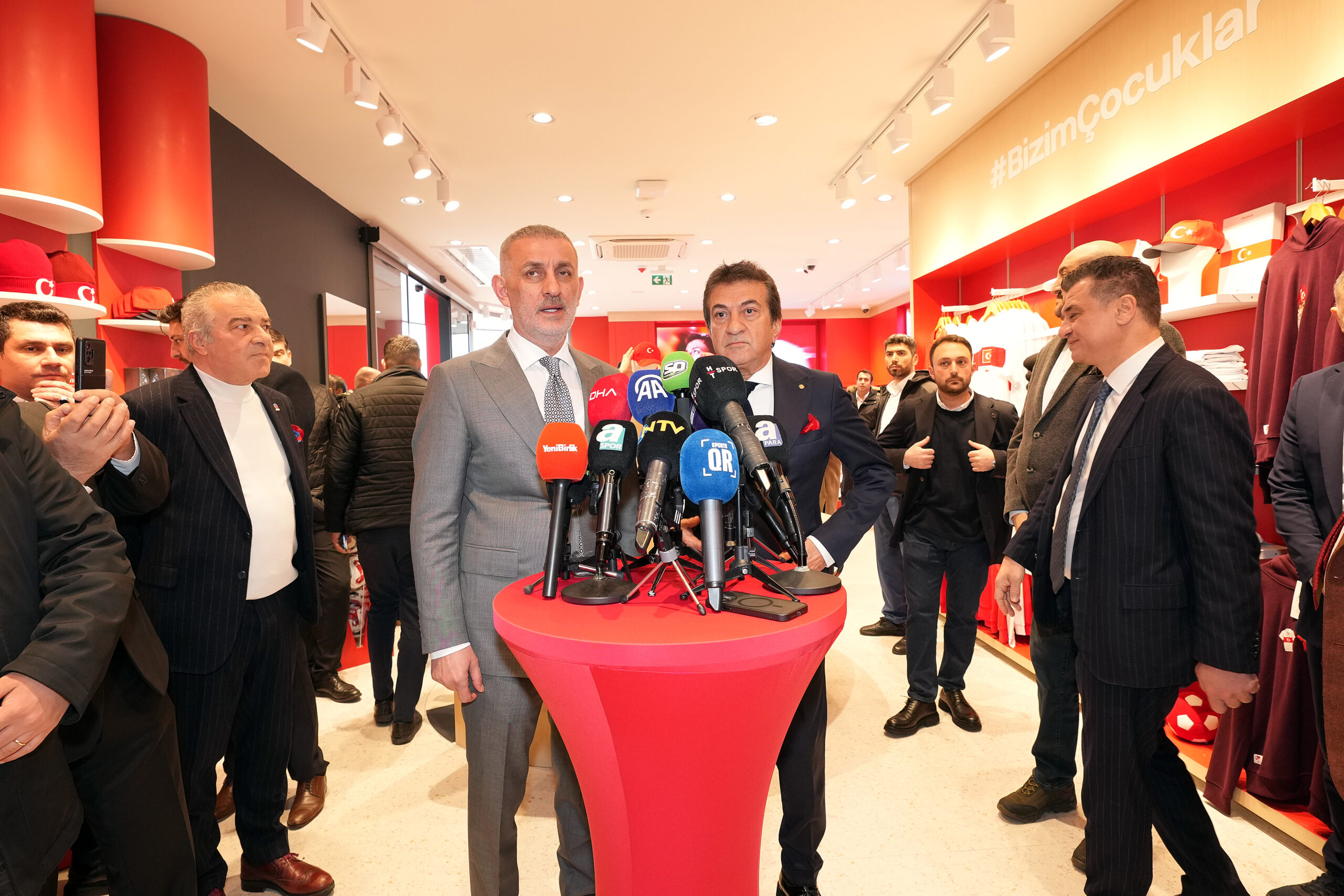 Avrupa Şampiyonası finallerinde de özellikle milli takımımızı giydirdiğimiz zaman bizim koleksiyonumuz en iyi koleksiyonlardan biri olarak gösterilmişti. Biz de bu başarılı genç jenerasyonun enerjisini, heyecanını artıran ve onlara özgüven veren bir koleksiyon yapıyoruz. Her şeyden önce burası büyük bir kompleks. Dünyanın her yerinden hem yöneticiler hem takımlar geliyor. Bu mağazamızla birlikte geldikleri zaman en azından bizi temsil eden ürünleri onlara takdim etme, hediye etme şansımız oluştu.