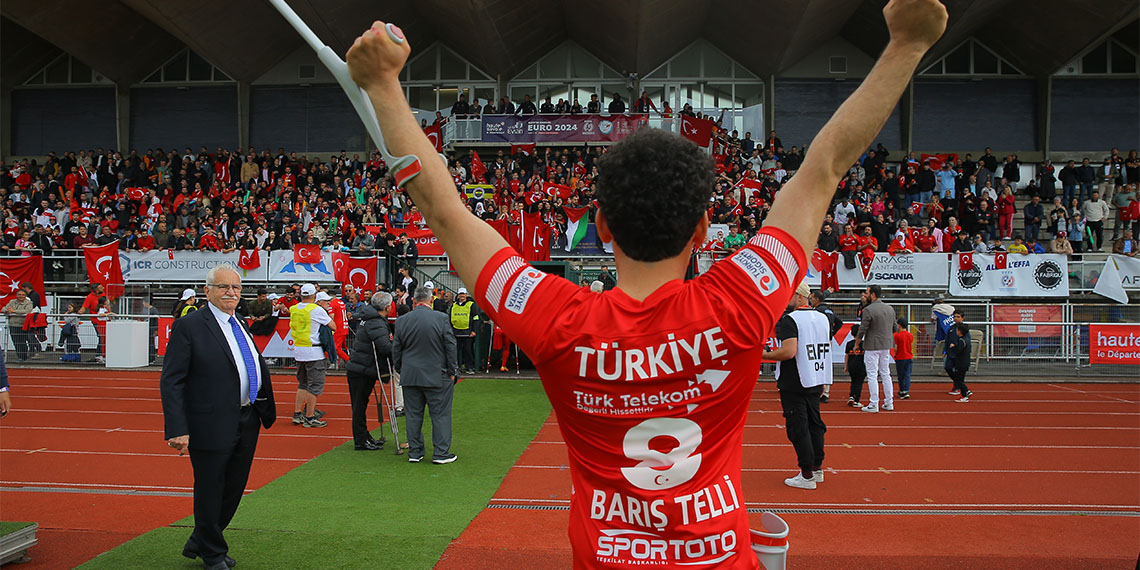 Fransa’nın Haute-Savoie kentinde düzenlenen EURO 2024’te C Grubu’nda yer alan Ampute Futbol Milli Takımı, çeyrek final mücadelesinde Camille Fournier Stadyumu’nda Almanya ile karşı karşıya geldi. Maça etkili başlayan ay-yıldızlılar, 5. dakikada Muhammet Yeğen’in serbest vuruştan attığı golle 1-0 öne geçti. Türkiye, 12. dakikada Kemal Güleş’in golüyle farkı 2’ye çıkardı.