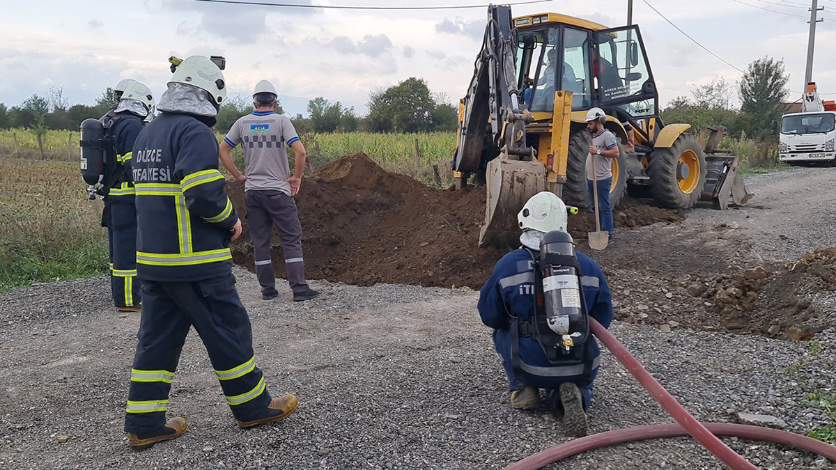 Düzce Belediye Başkan Yardımcısı Murat Gülmez ise “Bu bölgede kanalizasyon altyapı çalışması esnasında oluşan göçme çalışması sonrası olay gerçekleşti. Aynı bölgeden elektrik hattıyla teması sonrası yangın oluştu. Arkadaşlarımız anında müdahale ederek, gazın kesilmesini sağladı. Tehlikeli bir durum yok. Gerekli çalışmayı yaparak tamirat sonrası çalışmalarımıza devam edeceğiz” açıklamasında bulundu.