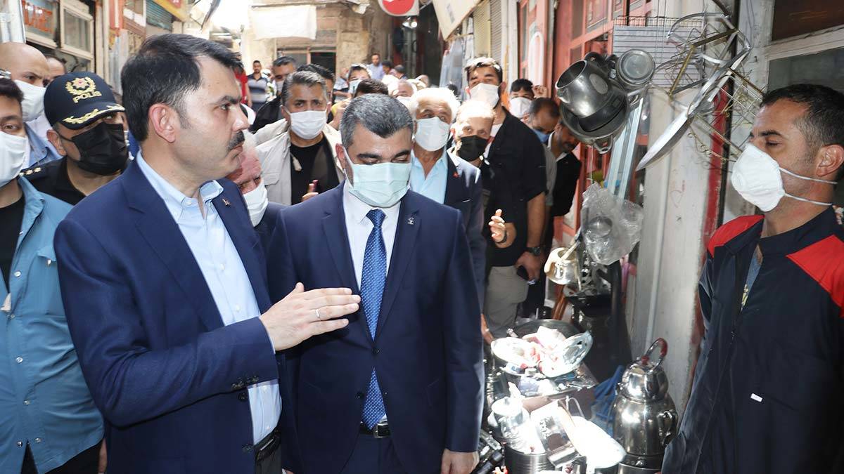 Bakan Kurum ve beraberindekiler, açıklamanın ardından Mardin’in tarihi caddelerini gezip, esnafla sohbet etti.