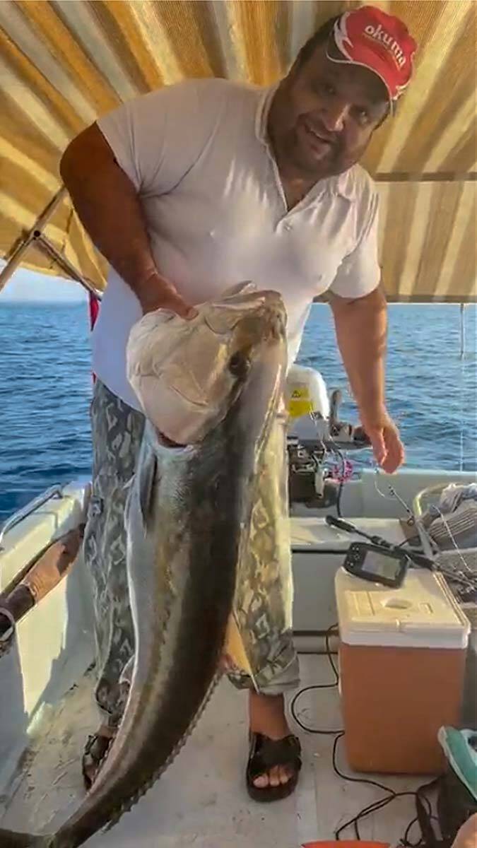 Antalya’da amatör balıkçı Volkan Ateş 30 kilogram ağırlığında kuzu balığı yakaladı