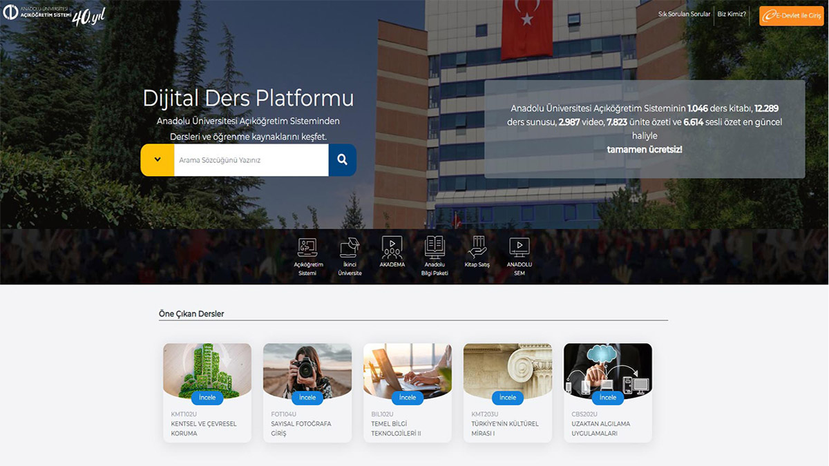 Eskişehir Anadolu Üniversitesi, Açıköğretim sistemindeki 60’ın üzerindeki lisans ve önlisans programlarında yer alan binin üzerindeki ders ve bu derslere ait 30 bine yakın ünite özetleri, sesli derslerin bulunduğu dijital ders platformu kurdu.