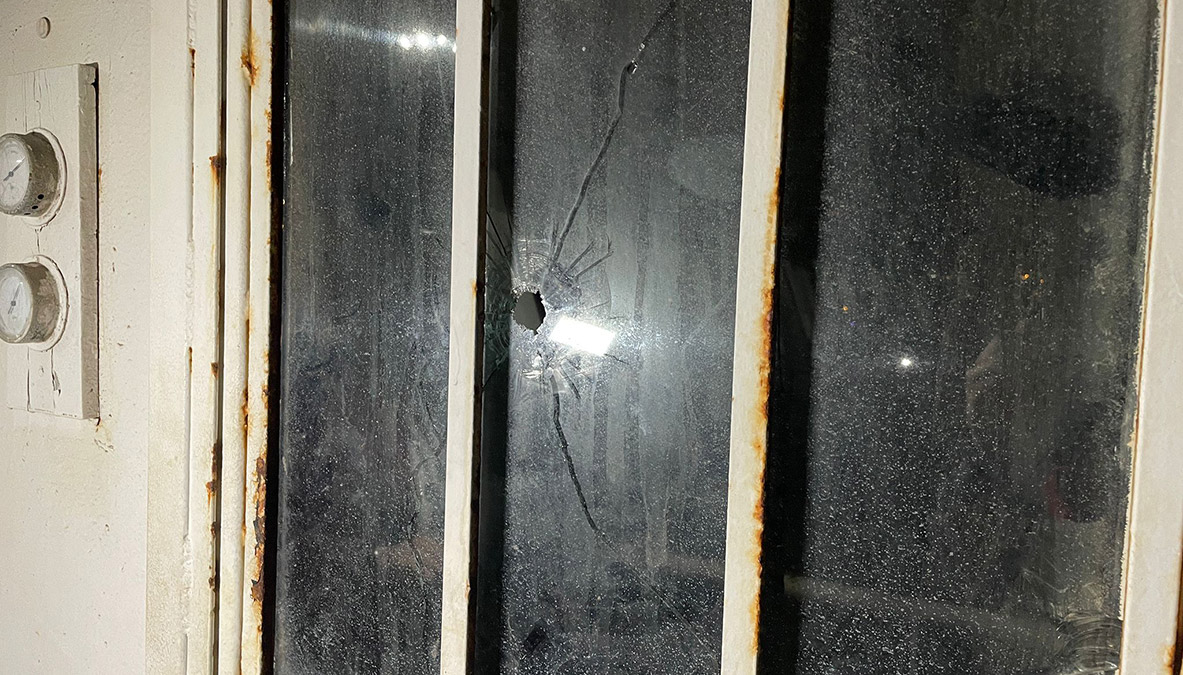 Yunan Sahil Güvenlik güçlerinin açtığı taciz ateşi sonucunda bir kurşun geminin kaptan köşküne isabet etti. Kaptan köşkünün kapısındaki camdan içeri giren kurşun geminin tavanını deldiği görüldü. Kurşunun kaptan köşküne isabet ettiği sırada gemi personelinin de köşkte olduğu öğrenildi. Çok kez Yunan Sahil Güvenliği tarafından, ateş edildiği gemi personeli tarafından dile getirilirken, şans eseri sadece bir kurşun gemiye isabet etti. Geminin içerisindeyse Somali’de daha önceki yıllarda olduğu öne sürülen bir başka kurşun izine daha rastlandı. O kurşunun da geminin yemekhane bölümündeki cama isabet ettiği görüldü.