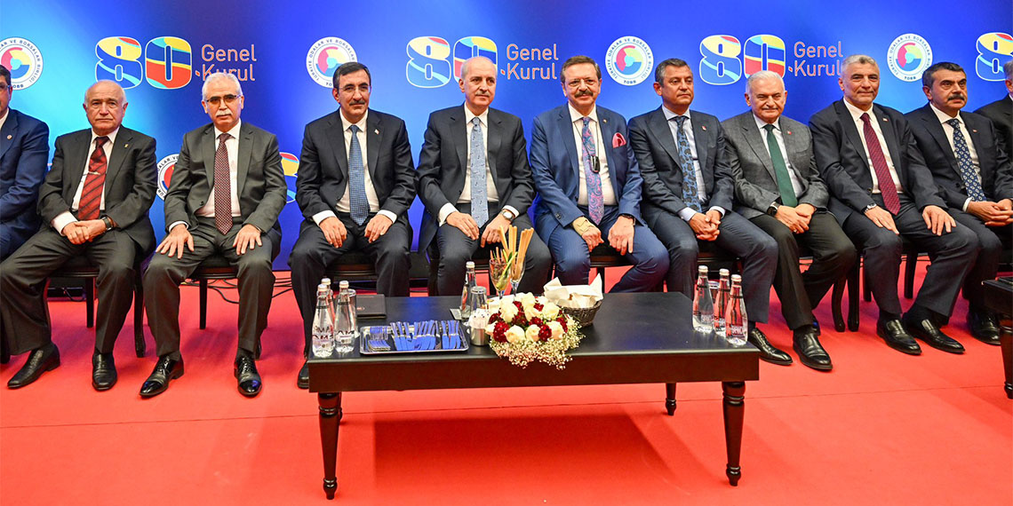 CHP Genel Başkanı Özgür Özel, Türkiye Odalar ve Borsalar Birliği’nin (TOBB) 80. Genel Kurulu kapsamında ATO Congresium’da düzenlenen akşam yemeğine katıldı. Resepsiyona ayrıca TBMM Başkanı Numan Kurtulmuş, Cumhurbaşkanı Yardımcısı Cevdet Yılmaz, Milli Eğitim Bakanı Yusuf Tekin, İYİ Parti Genel Başkan Müsavat Dervişoğlu, Saadet Partisi Genel Başkanı Temel Karamollaoğlu, YSK Başkanı Ahmet Yener, eski TBMM Başkanı Binali Yıldırım, CHP genel başkan yardımcıları ve milletvekilleri de katıldı. Burada konuşan Özel, muhalefet liderlerinin zamandan tasarruf etme açısından sözü kendisine bıraktığını belirtti.