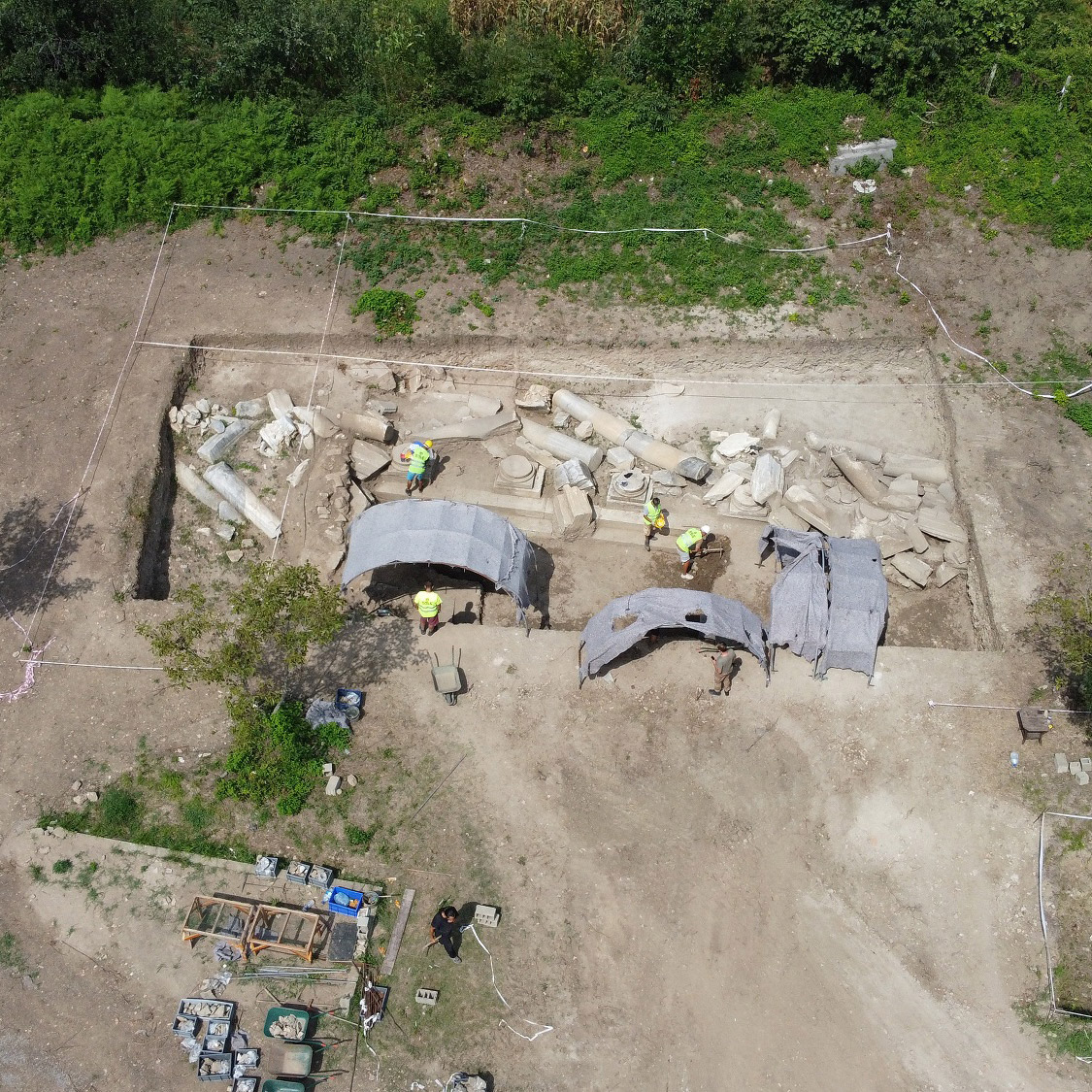 2 dönümlük arazideki 5 adet 6 metre boylarında sütun ile sütun ayaklarının konulduğu kartal figür işlemeli taban mermer kaideler bulundu. Roma dönemine ait kalıtsal yapının içerisinde 96 sikke ve 122 çeşitli boylarda eserler bulundu. Son olarak alanda ilk kez ‘tılsımlı amulet’ bulundu. 2 santim uzunluğunda piramit şeklini andıran tılsımlı amuletin üzerinde figürler olduğu görüldü.