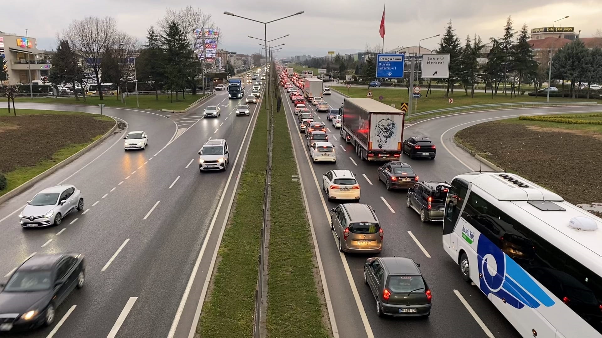 Ramazan Bayramı'nın 3. gününde Bursa-Ankara kara yolunda dönüş yolculukları ve öğrencilerin ders başı yapacak olması nedeniyle trafik yoğunluğu arttı. İnegöl ilçesi mevkisinde trafik zaman zaman durma noktasına gelirken, uzun araç kuyrukları oluştu.