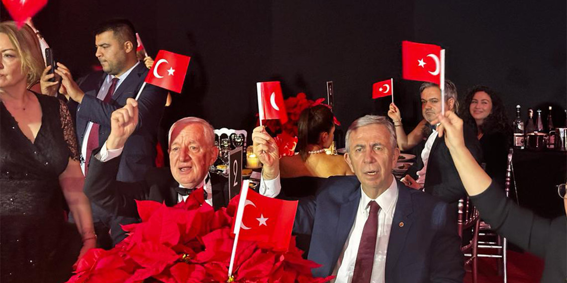 Ankara’da bir otelde ‘100’üncü Yıl Cumhuriyet Balosu’ düzenlendi. Baloya, Ankara Büyükşehir Belediye Başkanı Mansur Yavaş, diplomatlar, misyon şefleri ve davetliler katıldı. Etkinlik öncesi davetliler Cumhuriyetin 100’üncü yılı kapsamında Mustafa Kemal Atatürk’ün fotoğraflarının yer aldığı sergiyi gezdi. Etkinlik kapsamında davetliler ellerindeki Türk bayrakları ile söylenen marşlara eşlik etti. Baloda Enbe Orkestrası da sahne aldı.