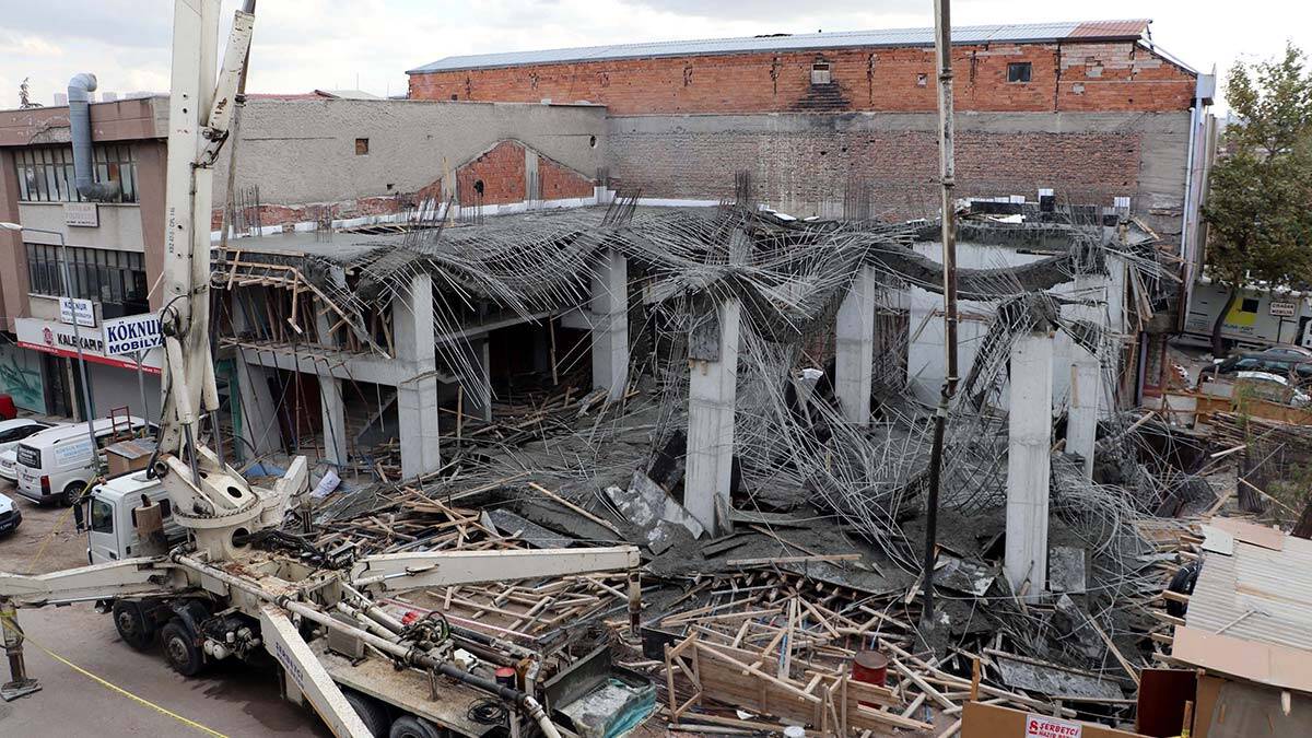 Ankara’da iş merkezi inşaatında beton dökümü sırasında meydana gelen göçükte, 3 işçi yaralandı