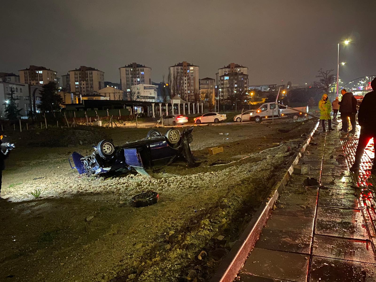 - G.Ö.'nün kullandığı 06 Fg 2681 plakalı otomobil, önce bariyerlere, ardından aydınlatma direğine çarparak takla attı.