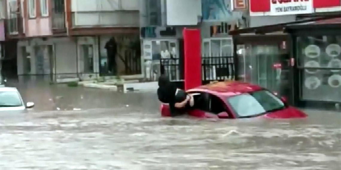 Ankara’nın Çankaya ilçesindeki Sıhhiye Çok Katlı Otoparkı’nın önünde bir kadın sürücü, aracı ile sel sularında mahsur kaldı. Suyun yüksekliği otomobilin yarısına kadar gelirken; sürücünün yardımına bir vatandaş yetişti. Kadın sürücü, aracının camından çıkartıldı. O anlar cep telefonu kamerasına yansıdı.