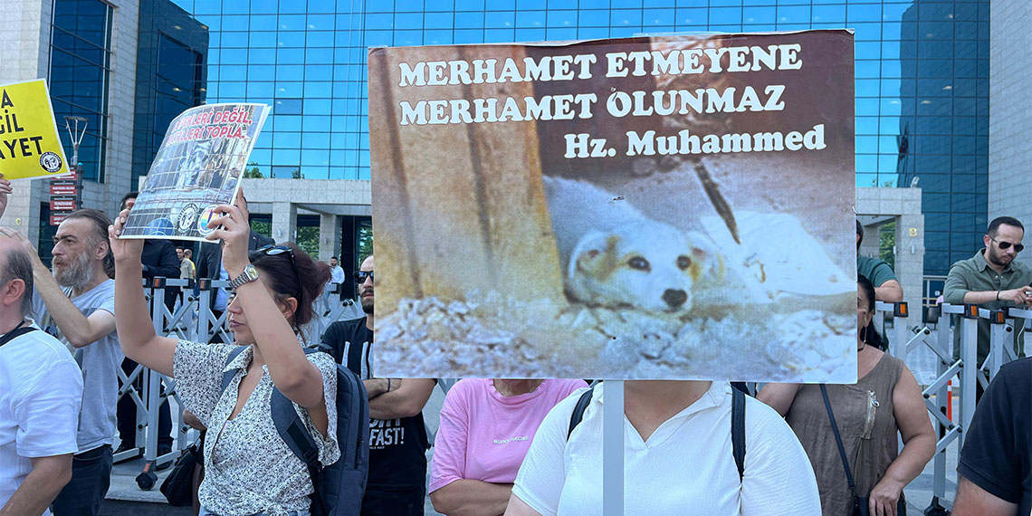 Ankara’da sokak hayvanları için tepki; “Susma haykır katliama hayır”, “Nefrete inat yaşasın hayat” diye sloganlar atıldı.