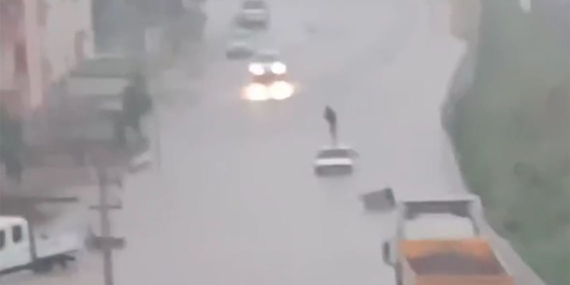 Ankara’nın Sincan ilçesine bağlı Tandoğan Mahallesi’nde bulunan Yaşar Kemal Caddesi, sağanak nedeniyle göle döndü. Otomobiliyle ilerlediği sırada su birikintisini fark edemeyen Mesut Yılmaz (30), aracının bozulmasıyla mahsur kaldı. Aracının içi su almaya başlayınca Yılmaz, camından çıktığı otomobilinin tavanında yardım bekledi. Kendi imkanları ile oradan kurtulmaya çalışan Yılmaz, dengesini kaybederek suya düştü. Yılmaz, daha sonra su birikintisinin içinden çıkarak çevredekilerin de yardımıyla kurulandı.
