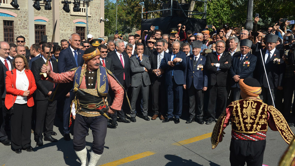 1000 seymen, Cumhuriyet Caddesi üzerinde gösteri yaptı. Bakan Ersoy ve katılımcılar, seymenlerin gösterisini ilgiyle izledi.