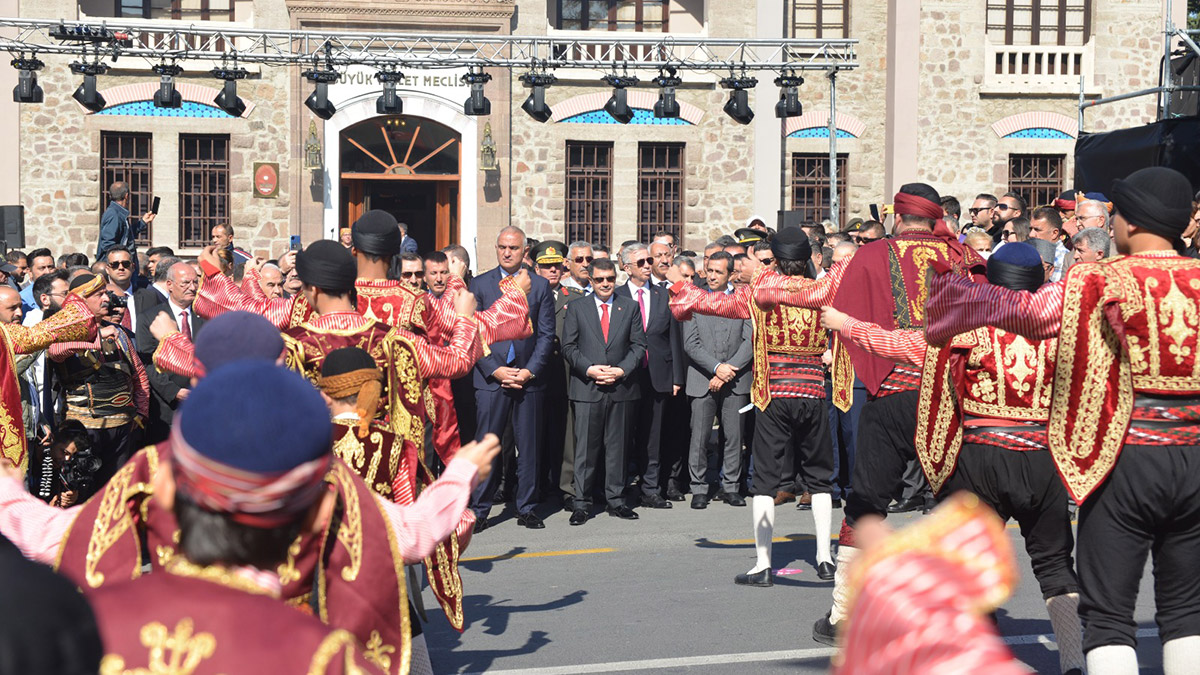 Ankara’nın 13 Ekim 2923’te başkent ilan edilmesinin 99’uncu yıl dönümü kutlamaları kapsamında, Ulus’taki 2’nci TBMM binası (Cumhuriyet Müzesi) önünde ‘Seymen Alayı’ gösterisi düzenlendi. Etkinliğe Kültür ve Turizm Bakanı Mehmet Nuri Ersoy, Ankara Valisi Vasip Şahin, Ankara Büyükşehir Belediye Başkanı Mansur Yavaş, Valilik ile Büyükşehir Belediye Başkanlığı personeli ve çok sayıda kişi katıldı.