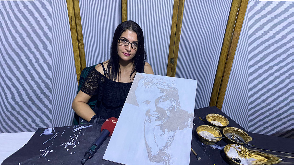 Portrenin yapım sürecini de anlatan Lokmacı, “Çok araştırma yaptım, küllerden daha önce resim yapılmış ama formunu bozmadan çalışan ilk kişi olduğumu düşünüyorum. Suyla karıştırılmış ya da akrilik boya karıştırılarak yapılmış portreler var ama formunu bozmadan silüet olarak külleri tuval üzerinde gösteren ilk kişiyim, diyebilirim.