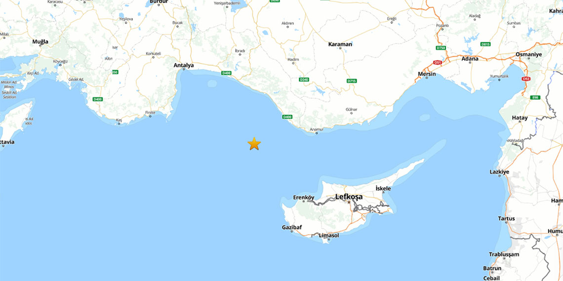 Afet ve Acil Durum Yönetimi Başkanlığı (AFAD) Deprem Dairesi’nin verilerine göre; Akdeniz’de saat 12.09’da Richter ölçeğine göre 4.6 büyüklüğünde deprem meydana geldi. Antalya’nın Gazipaşa ilçesinin 58,86 kilometre açığındaki deprem, 32,69 kilometre derinlikte kaydedildi. Deprem Gazipaşa, Manavgat ve Alanya ilçeleri başta olmak üzere çevre ilçelerden de hissedildi. Bazı vatandaşların depremin etkisiyle sokağa çıktıkları görüldü. İlk belirlemelere göre depremin herhangi bir hasara neden olmadığı öğrenildi.