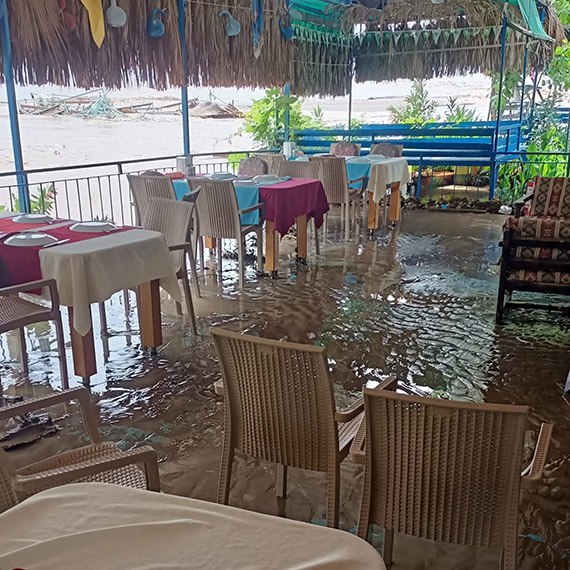 Meteoroloji 4’üncü Bölgesel Hava Tahmin Merkezi’nin Antalya’nın batı ilçeleri için ‘Sarı Kod’ uyarısı ardından Kumluca ilçesinde etkili olan yağışlar nedeniyle turistik tesisler zarar gördü. Kumluca ilçesinin önemli turizm merkezleri arasında yer alan Adrasan Mahallesi’nde bu sabah saatlerinde etkili olan yağışta Sarıkavak Deresi taştı.