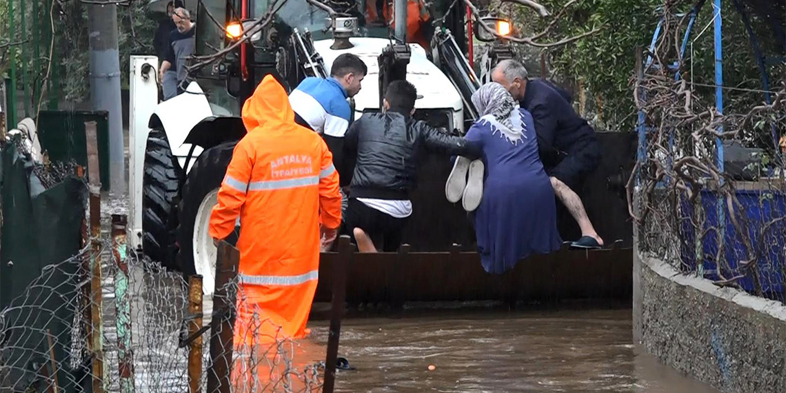 Antalya Valisi Hulusi Şahin, AK Parti Antalya Milletvekili Mustafa Köse ile birlikte sel felaketine uğrayan mahallelerde incelemelerde bulundu. Antalya’da dün saat 01.00’den itibaren başlayan yağmur ve yer yer dolu ile beraber Antalya merkez ilçelerinde, özellikle Kepez ve Muratpaşa’da su baskınları ve taşkınlar olduğunu belirten Vali Şahin, “Gün boyu da devam ediyor. Şu an da bazı eski dere yataklarında tıkanıklıklar oldu. Yollarımız, kara yolları, alt geçit ve kavşaklarda ciddi su birikintilerinin getirdiği aksamalar oldu. Şu anda trafik aksamaları yaşıyoruz. 1500 civarında 112 ihbarı aldık. Bunlar büyük oranda ev ve iş yeri su baskınları şeklindeydi. Kamu kuruluşlarımızdan Muratpaşa Nüfus İlçe Müdürlüğümüzde su baskını dolayısıyla hizmet veremiyoruz. Okullarımız tatil. Antalyalılara geçmiş olsun diyoruz. Bu gece zor bir geceydi. Hızlı bir şekilde müdahale ediyoruz, AFAD ekiplerimiz, belediyelerimizin iş makineleri sahada, arkadaşlarımız çalışıyorlar. Bir taraftan da Defterdarlık ekiplerimiz hasar tespit çalışmaları yapıyorlar. En kısa sürede hayatın normale dönmesi için gerekli çalışmaları tamamlayacağız” diye konuştu.