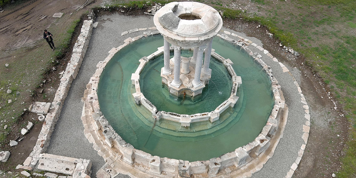 2023 yılı Mayıs ayında Antalya Kültür Varlıkları Koruma Bölge Kurulu’na sunulan projenin onaylanmasının ardından yapıya su hattı döşendiğini belirten Doç. Dr. Özüdoğru, “Günümüzde halen kullanılan orijinal antik kaynaktan su temini sağlanmıştır. Orijinal durumunda yapıya ulaşan su, altı sütun arasındaki yatar vaziyette 6 heykelin uç kısmındaki aslan ya da panter biçimindeki çörtenlerden ilk havuza akmaktaydı.