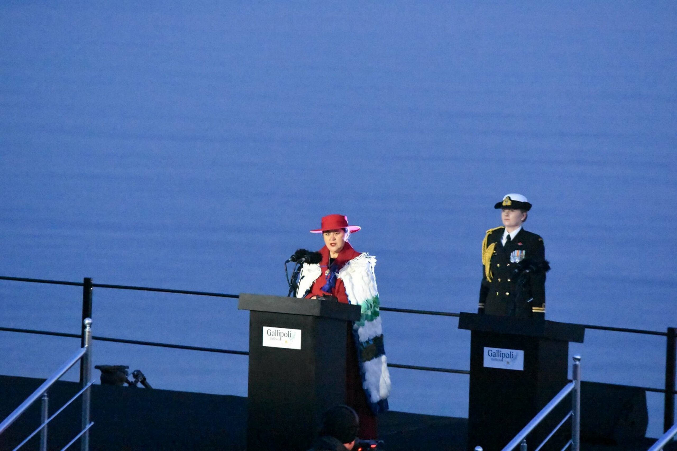 Şafak vakti başlayan programda Yeni Zelanda Genel Valisi Cindy Kiro ve Avustralya’nın Türkiye Büyükelçisi Sally-Anne Vincent, günün anlam ve önemine ilişkin konuşma yaptı. Ardından İkinci Kolordu Piyade Kurmay Albay Fatih Cansız, Mustafa Kemal Atatürk’ün Çanakkale Savaşları’nda hayatını kaybeden yabancı ülke askerlerinin ailelerine gönderdiği mektubu, Türkçe ve İngilizce olarak okudu.