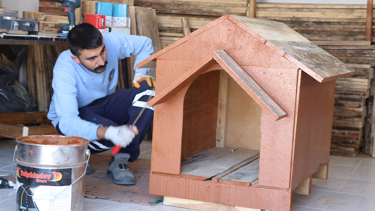 Van’ın İpekyolu Belediyesi, Merkez Bankası Van Şubesi’nin kullanmadığı bozuk para kasaları ile araç lastiklerini Çevre Koruma ve Kontrol Müdürlüğü atölyesinde sokak hayvanlarına yuvaya dönüştürüyor.