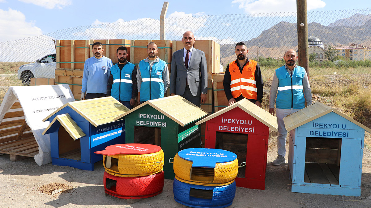 İpekyolu Belediyesi, kış şartlarının ağır geçtiği Van’da, sokak hayvanlarını korumak için harekete geçti. Belediye, farkındalık oluşturmak ve sokaktaki hayvanlara yardımcı olmak için kurduğu atölyede atık malzemeleri geri dönüşüme kazandırıyor. Bostaniçi Mahallesi’nde 11 personelin çalıştığı atölyeye getirilen, Merkez Bankası Van Şubesi’nin kullanmadığı 100 bozuk para kasası ile çöpe atılan 30 araç lastiği; sokaktaki köpek, kedi ve kuşlar için yuvaya dönüştürüldü.