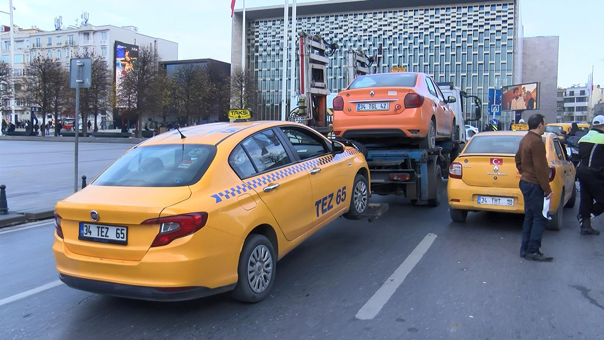 Trafik polisleri, Taksim Meydanı’nda taksicilere yönelik denetim gerçekleştirildi. Denetimlerde, ‘Müşteri seçen’, ‘kural ihlali yapan’ ve ‘usule uygun olmayan araçlara’ idari para cezası kesildi, birçok taksi ise trafikten men edildi.