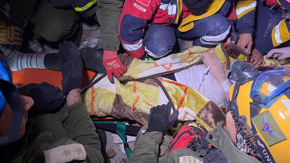 İsrail’den, Rusya’dan, Polonya’dan, İtalya’dan ve Azerbaycan’dan ekipler, yaralıların enkazdan çıkarılma görüntülerini paylaştı.