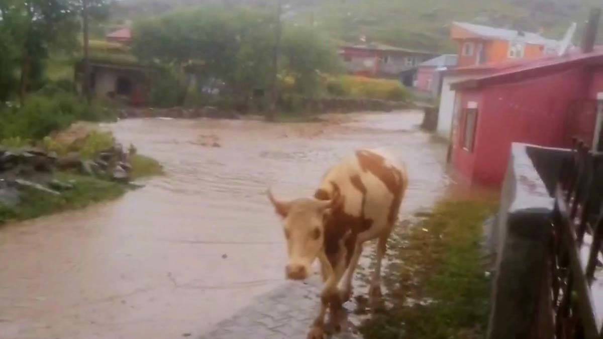 Ardahan’da etkili olan yağmur, Damal ilçesinde sele dönüştü. İlçede birçok sayıda ev su altında kaldı.