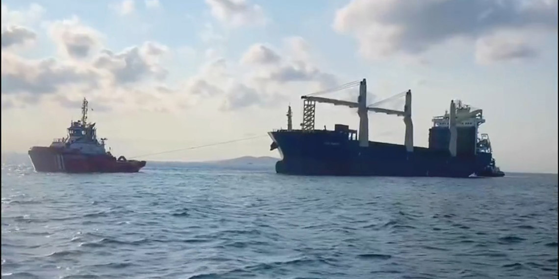 İstanbul Boğazı’nın girişinde arıza yapan kargo gemisi Ahırkapı’ya demirletildi.