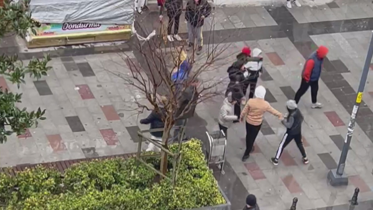 Arnavutköy’de yaşları 10-15 arasında değişen çocuklar, caddede yürüyen bir kadın ve çocuğa saldırdı. O anları çevredekiler cep telefonu kamerasıyla görüntüledi.