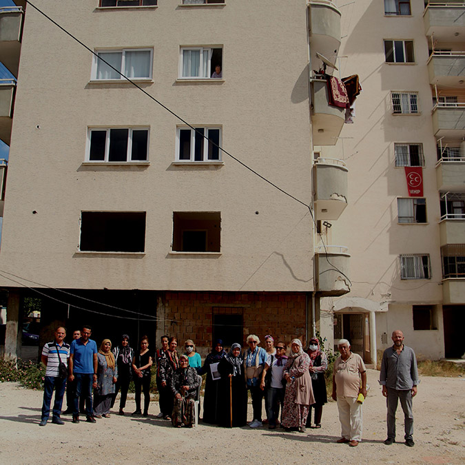 2004’te arsa sahibi, başka bir müteahhitle anlaştı ve 2 bloğun yapımına başlandı. Ev sahiplerinden tapu karşılığında 12 bin 500 lira ek para toplayan müteahhit, binanın 5’inci katına geldiğinde arsa sahibiyle tartışıp, yapmış olduğu 5 katlı binayı da yıktırdı. Aynı yıl arsa sahibi, hayatını kaybetti. O günden bu yana hiçbir işlem yapılmayan arsa ve binalar için Hasan Öztanrıören’in 13 mirasçısı harekete geçti. Mirasçılar, 6 ay önce başka bir müteahhitle görüşmeye başladı. Müteahhit ev sahipleriyle görüşüp, mevcut yapılan apartmanın da yıkılması gerektiğini, 800 bin lira karşılığında ise ev sahiplerine yeni daire vereceğini taahhüt etti. Tapuları olmayan ev sahipleri ise parasını verip aldıkları eve bir kez daha para ödemek istemediği için teklifi kabul etmedi.
