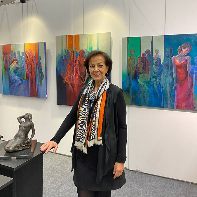 “Bu sene fuarda, benim için yıllardır konsept haline dönüşen ‘kadın’ temalı eserlerim ile yer alıyorum. Kadın konusunu kendimi ifade etmenin en güzel yolu olarak tanımlayabilirim. Çünkü resimlerimde kullandığım bir dil, ritim, kompozisyon ve en önemlisi duygu var. Fuar için de tüm bunları yansıtan seri halinde 3 adet resim ve kadın figürlerimden oluşan heykeller hazırladım.