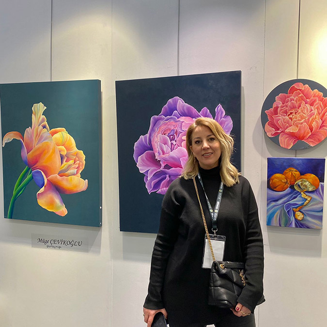 Fuara doğa konulu çalışmaları ile katıldığını aktaran ressam ve İtalyanca çevirmen Müge Çevikoğlu, “Annem dolayısıyla çocukluktan beri sanat ile büyümüş biri olarak yaklaşık 10 yıldır bu alana yönelik çalışmalarımı yoğunlaştırdım. Çalışmalarımı ilk defa böyle bir ortamda sergileme imkanı buldum. Burada umudu simgeleyen ve insanların içini açacak eserlerimi sunmak istedim. Genelde doğa konulu olan eserlerim arasında en çok çiçek temalı olanlar dikkat çekti. Çiçeklerin ve eserlerimdeki renklerin beni tam olarak yansıttığını düşünüyorum” dedi.