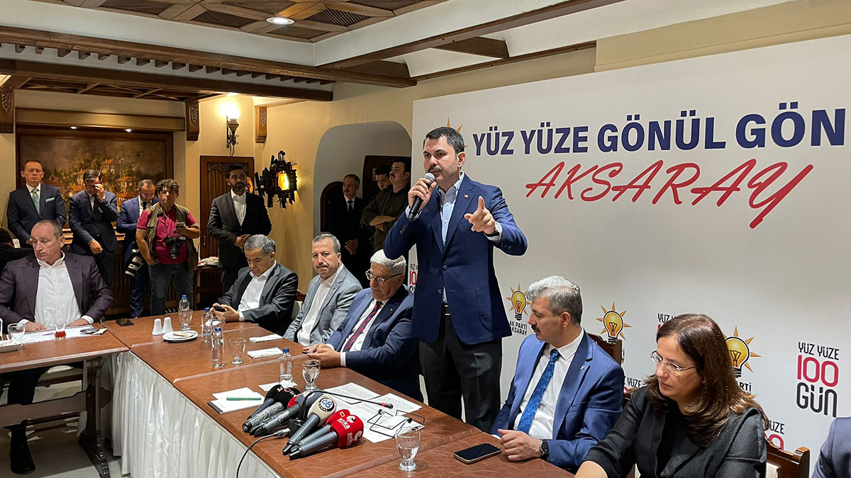 ‘Yüz Yüze Gönül Gönüle Aksaray’ programı kapsamında bir otelde vatandaşlarla bir araya gelen Çevre, Şehircilik ve İklim Değişikliği Bakanı Murat Kurum, sosyal konut projeleri hakkında bilgi verdi. Bakan Kurum, “4 gün sonra Cumhurbaşkanımız Türkiye’ye çok büyük bir müjde verecek. Bu müjde çerçevesinde de yeni sosyal konutlarımızı 81 il ve ilçelimizde vatandaşlarımıza kazandırmış olacağız. Burada gençlerimiz, emekli, şehit ve gazi yakınları ile emekli vatandaşlarımız olacak. Asgari ücretli vatandaşlarımız ev alabilecekler. Gençlerimiz okullarını bitirdiklerinde hayata atılacakları an yine bu sosyal konut projesinden yararlanabilecekler.