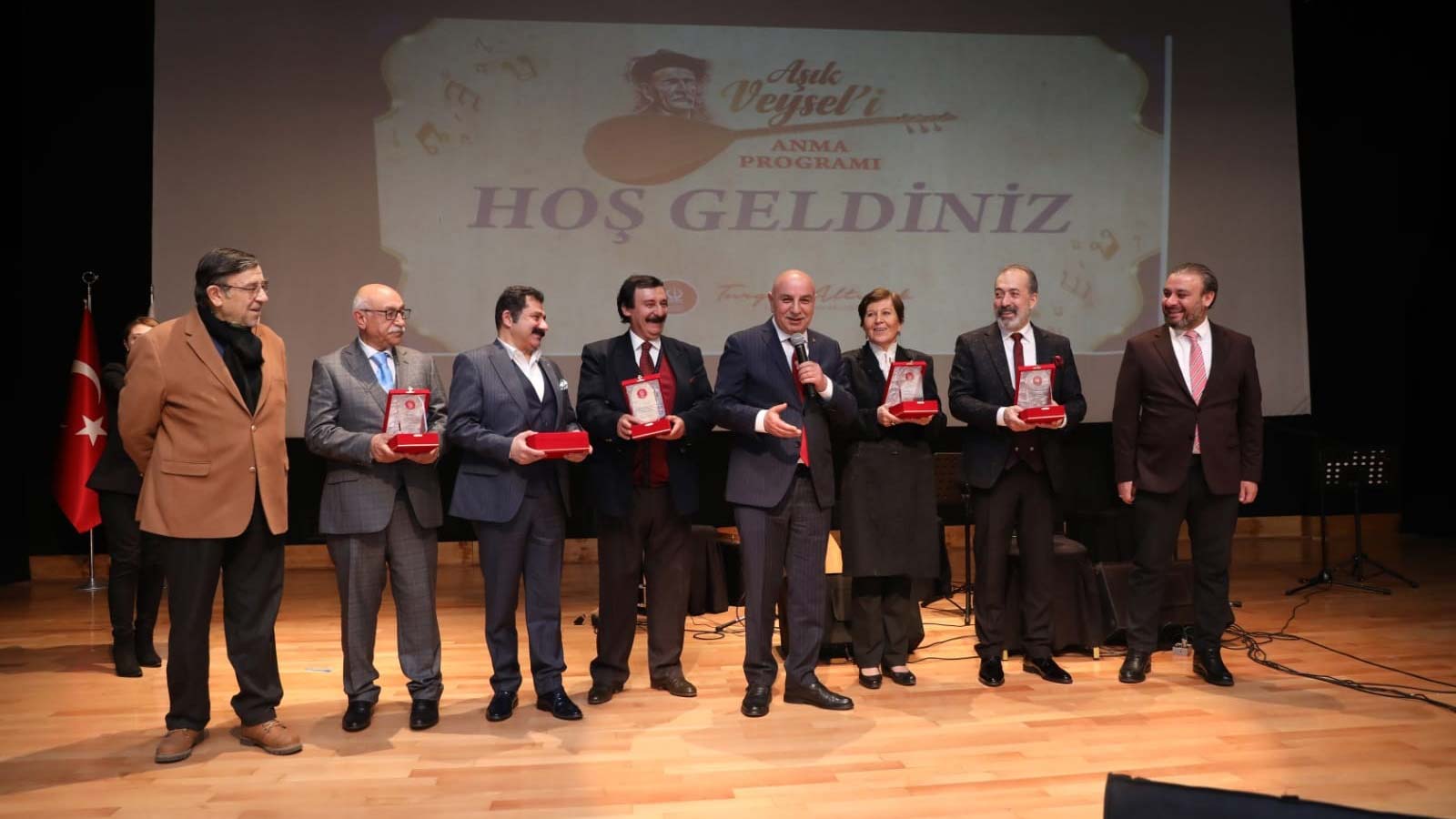 Ayrıca Araştırmacı Yazar Gülağ Öz de Âşık Veysel’in hayatından kıssalar anlattı. Altınok, konserin sonunda sanatçılara teşekkür plaketi verdi.